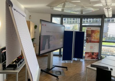 Neben einer Flipchart und Metaplanwänden steht Ihnen ein digitales 85″ Whiteboard zur Verfügung.