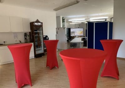 Der Schulungsraum / Das Foyer ist rund 100 m² groß, beinhaltet Sitzplätze für 25 Teilnehmer. Während der Pandemie finden 15 Teilnehmer -mit ausreichend Abstand- platz.
